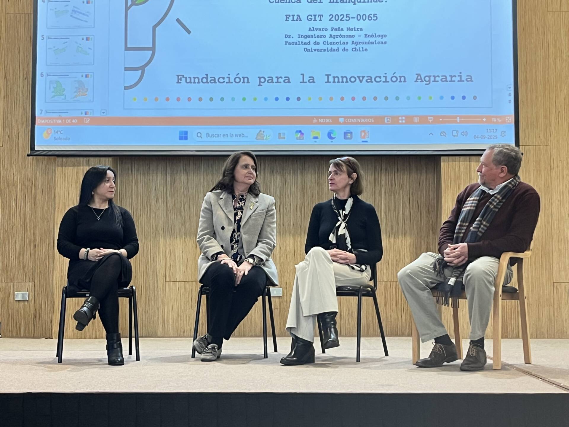 Para celebrar el día del vino chileno, la Asociación de Productores Vitivinícolas de la Región de los Lagos presentó el 4 de septiembre en la biblioteca municipal de Frutillar sus acciones y proyectos frente a autoridades locales, representantes de CORFO, viticultores de las regiones de las Araucanía y de los Ríos. En esta ocasión, Álvaro Peña Leiva, ingeniero agrónomo, enólogo de la Universidad de Chile y gestor del proyecto financiado por la Fundación para la Innovación Agraria (FIA-GIT 2025-0065) mostró los avances y expuso la situación de la viña chilena y el rol que jugará (de hecho, ya lo juega) la región de los Lagos debido al cambio climático y sus consecuencias en la vitivinicultura, invitado por Sandra Rios, directora ejecutiva de la asociación.